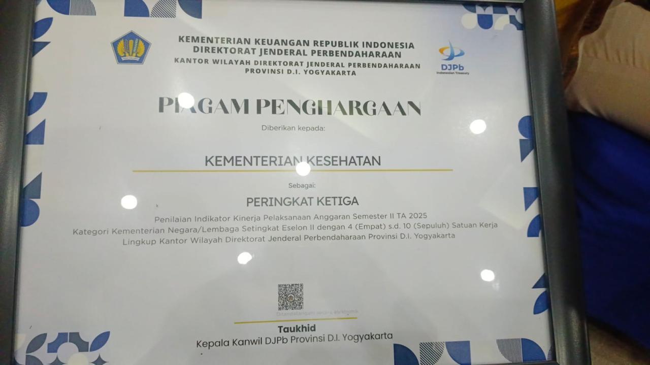 Poltekkes Kemenkes Yogyakarta Raih Penghargaan Peringkat 3 Atas Penilaian dengan Kinerja Pelaksanaan Anggaran Terbaik Umum